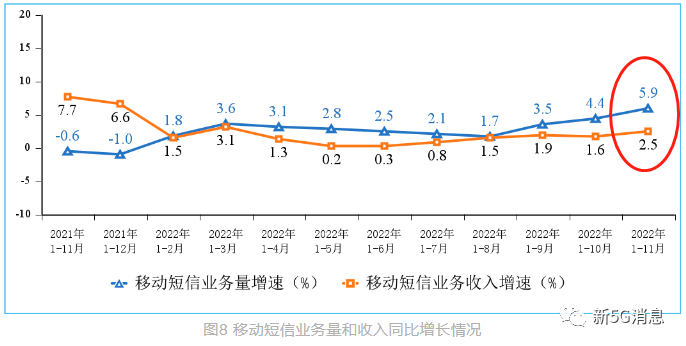 其中,1—11月份,移动短信业务量增速持续回升。具体:全国移动短信业务量17040亿条(对比1-10月,增长1752亿条),比上年同期增长5.9%,移动短信业务收入同比增长2.5%,增速较1—10月份分别提升1.5个和0.9个百分点。